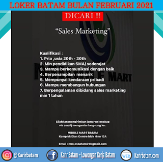 Lowongan Kerja Sales Marketing Middle Mart Batam